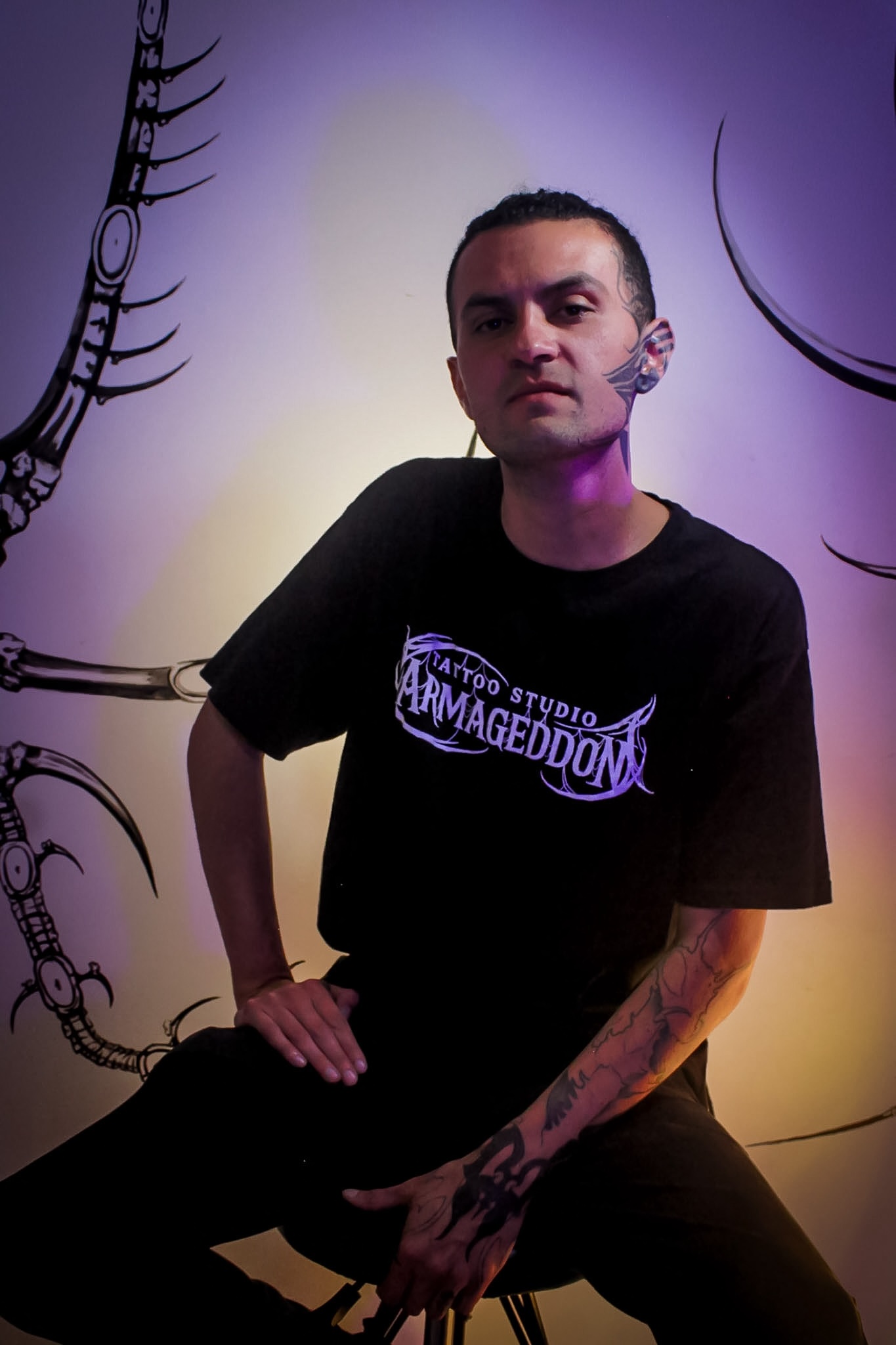 Serra es tatuador con 5 años de experiencia, especializado en blackwork, ilustrativo y fineline. Su trabajo se distingue por una estética intensa y equilibrada, donde las líneas precisas, las sombras profundas y la composición artística se combinan para crear piezas con identidad propia.