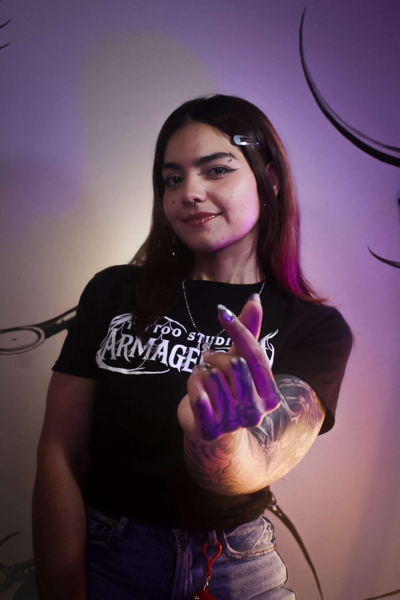 Astery es tatuadora con 3 años de experiencia, especializada en línea fina, blackwork ilustrativo, cybersealism y neotribal. Su trabajo combina una estética oscura con diseños delicados y equilibrados, cuidando cada detalle. Se enfoca en transformar ideas en tatuajes personalizados, asegurando resultados únicos, de alta calidad y duraderos.