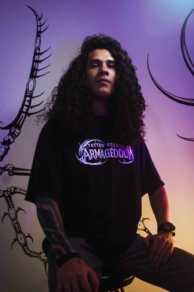 Andrey Sojo es un artista del tatuaje radicado en San José, Costa Rica, con 6 años de experiencia desarrollando piezas que fusionan estilos black and grey, blackwork y anime. Su trabajo se inspira en la capacidad de plasmar personajes e imágenes con gran fuerza visual, combinándolos con fondos en blackwork que aportan profundidad y una estética que rompe con lo convencional.